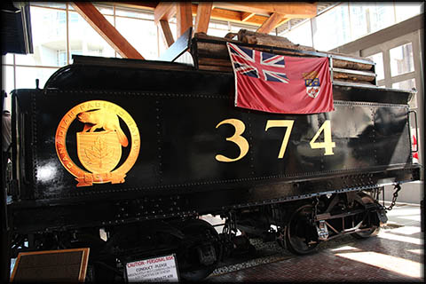 Das Grün des Stanley Park brauchte dringend einen Gegenpart - was war da besser geeignet als eine rabenschwarze Lokomotive. Im Yaletown Roundhouse schauen wir uns die Engine 374 an. Dies ist die Dampflok, die den ersten Passagierzug nach Vancouver gezogen hat - im Mai 1887. |