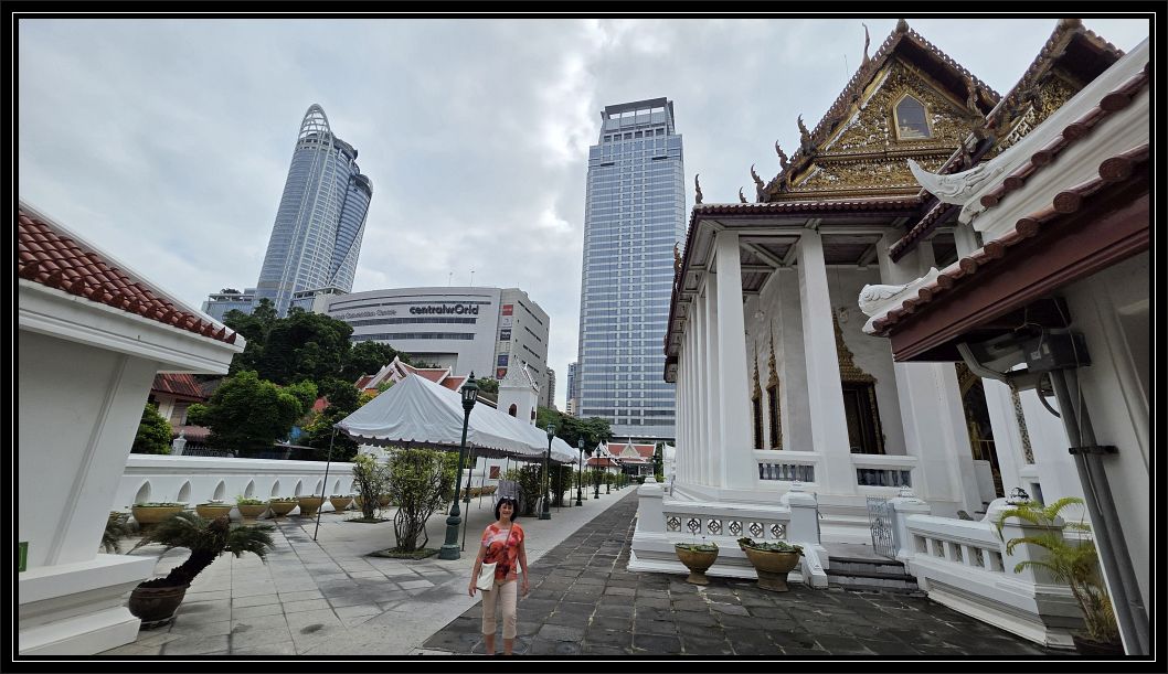 Da wir schon recht zeitig unterwegs waren, hatten die von Ramona angesteuerte Shopping Center noch nicht geöffnet. Hier in diesem Bereich tummeln sich fünf richtig große Shopping Center. Und mittendrin steht der Pathum Wanarem Tempel, den wir uns natürlich erst mal zu Gemüte führten. Im Hintergrund ist schon das One World Center zu sehen, wo Ramona pünktlich um Zehn einfallen möchte.