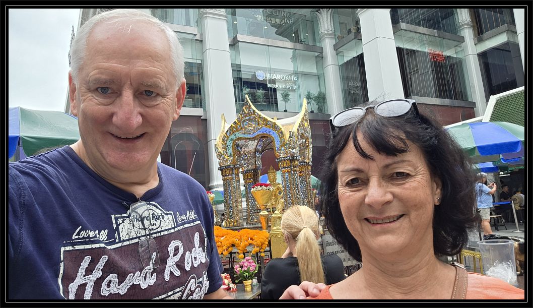 Einige Zeit später, auch nach Auffinden des zweiten Geocaches, meldete mir Ramona per Whatsapp, dass sie die ersten drei Shopping Center abgearbeitet hat. Ich also ab zur BTS (eine der S-Bahnen in Bangkok) und zum Erewan Schrein, unserem verinbarten Treffpunkt.