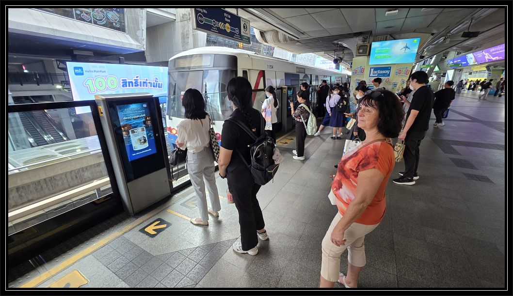 Gegen halb Neun verließen wir das Hotel und machten uns auf den Weg zur Bahn. An der Rezeption fragte ich sicherheitshalber nach, ob heute wirlich das Lichterfest (Loy Krathong) gefeiert wird. Die junge Dame lächelte und zeigte neben sich, denn da waren zwei Krathongs als Deko aufgestellt. Also alles schick für den heutigen Abend.