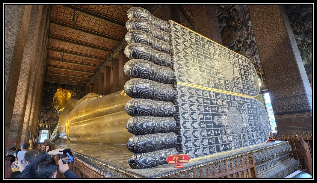Den liegenden Buddha haben wir zuerst besucht, denn später am Tage muss man hier heftigst anstehen. |