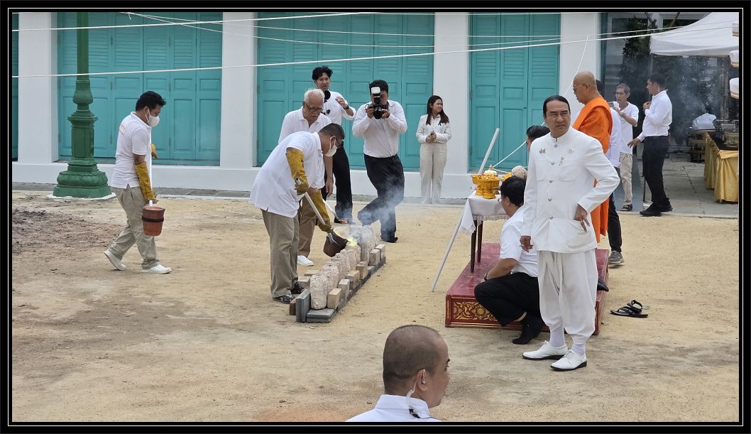 In die Ordinationshalle konnten wir leider nicht rein schauen, da dort irgendweine Zeremonie stattfand. Als Entschädigung konnten wir zuschauen, wie auf dem Hof irgendwelche Dinge aus flüssigem Metall gegossen wurden. Da diese von einem Mönch gesegnet wurden, muss es irgendwas für den Tempel sein. |