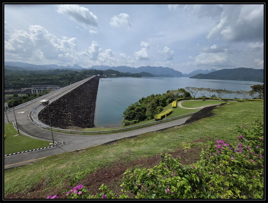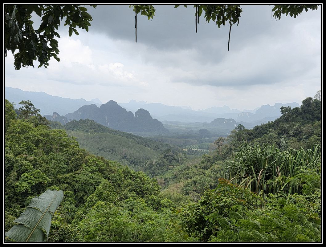Nach Acht sind wir auf die Piste zum Ratchaprapha Stausee. Anfangs lag noch dichter Dunst auf der Landschaft, aber mit jeder Minute wurde das Wetter und die Sicht besser. |