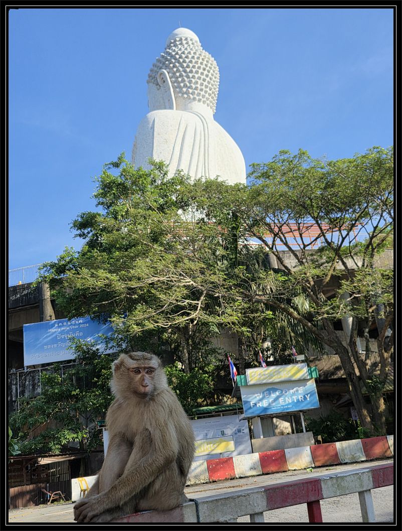 Vor Ort wurden wir direkt von Affen begrüßt. Wir kamen zwar nicht direkt an den Buddha, aber bis zum Parkplatz davor. Also alles noch im grünen Bereich.