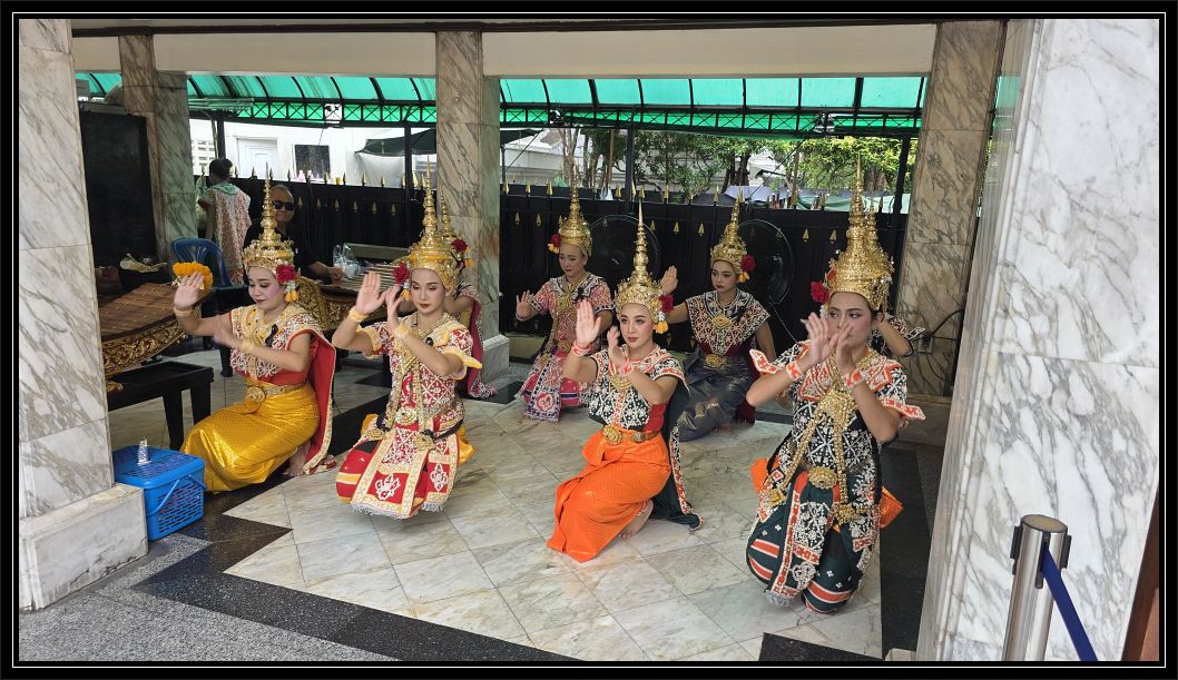 Hier könnte man für eine Spende vor einer Gruppe Thai Tänzerinnen ein Gebet sprechen. Ok, ich gebe es zu, wir haben auf beides verzichtet.