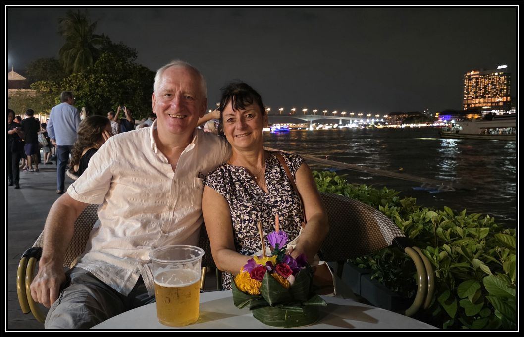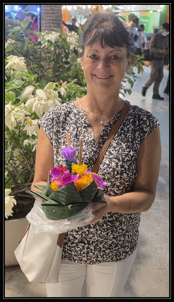 Sicherheitshalber kauften wir uns noch vor dem Gelände ein Krathong (Palmenblattboot), das wir später auf dem Fluss schwimmen lassen wollten. Wenn wir schon hier sind, dann müssen wir auch mitmachen.
