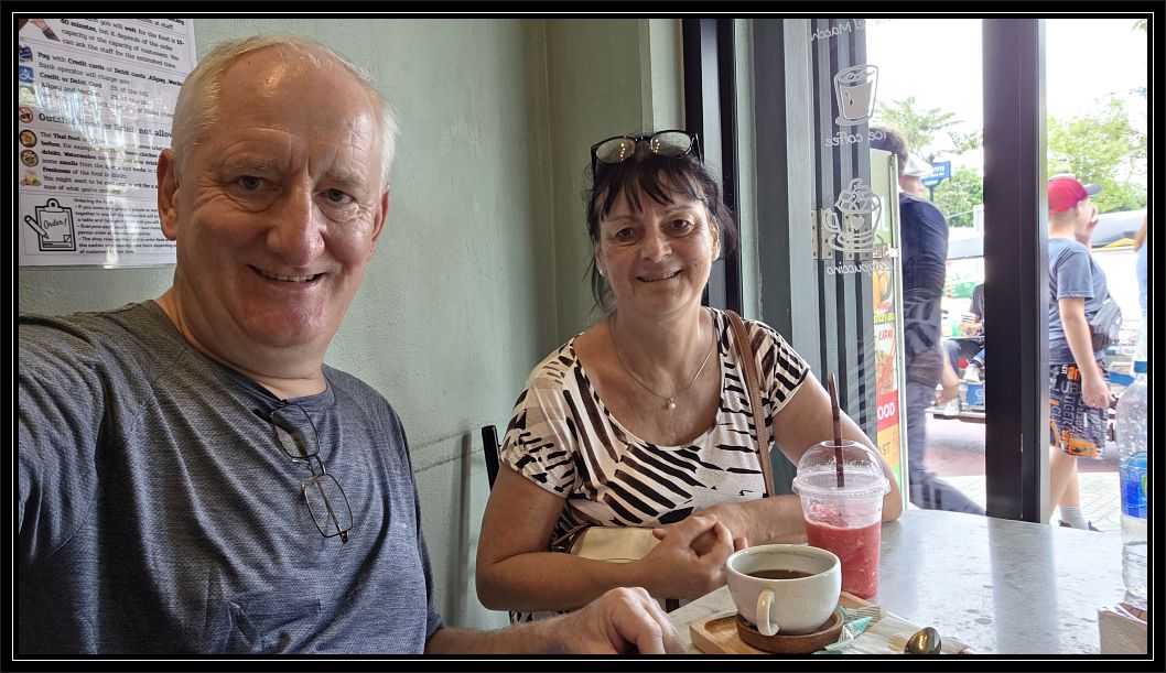 Nachdem wir uns an den vielen Buddhas satt gesehen hatten, sind wir aus dem Tempel raus und in das nächste klimatisierte Cafe rein. Denn da es heute ziemlich bewölkt war, hat sich die Luftfeuchtigkeit in extreme Höhen bewegt. Mein T-Shirt war jedenfalls klitschnass. |