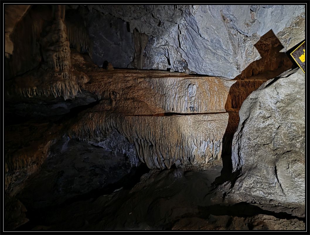 Die Höhle bot einiges an Tropfsteinen, die man sich anschauen konnte. Aber sie war bis auf den Zugang null erschlossen, also keine Stege, kein Licht und keine Sicherungen. |