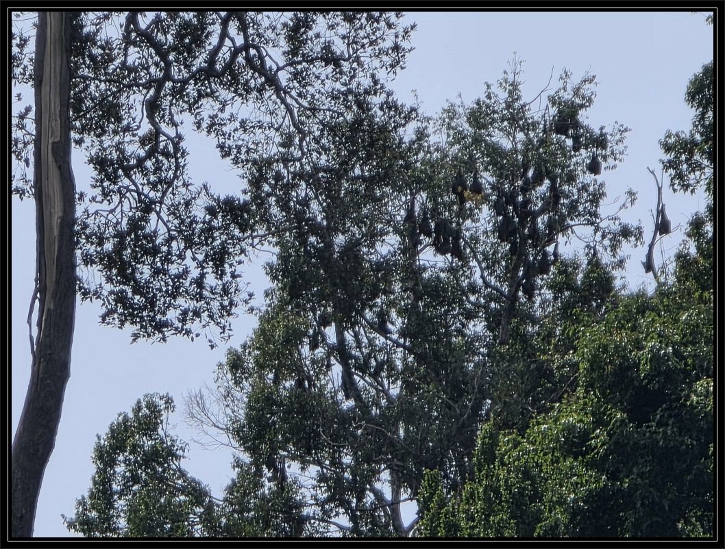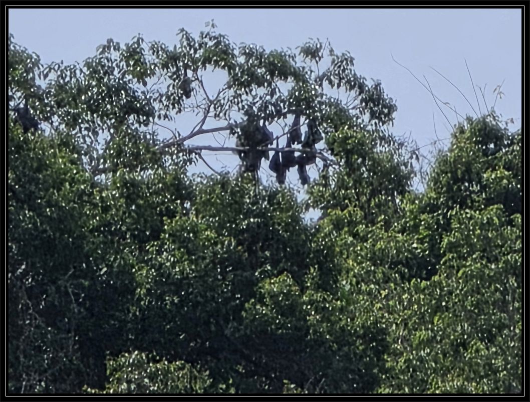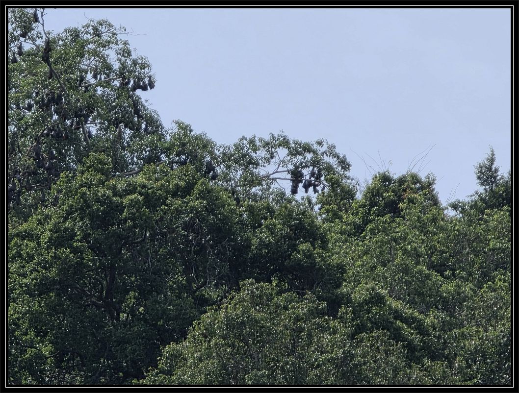 In einem kleinen Seitenarm zeigte uns unser Guide noch einige Bäume, auf denen große Fledermäuse den Tag verbrachten. Ok, das Smartphone war auf Grund der Entfernung etwas überfordert, aber man konnte zumindest etwas erkennen. |