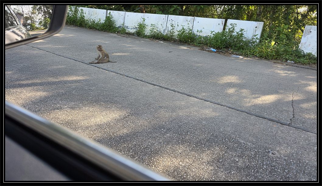 Vor Ort wurden wir direkt von Affen begrüßt. Wir kamen zwar nicht direkt an den Buddha, aber bis zum Parkplatz davor. Also alles noch im grünen Bereich.