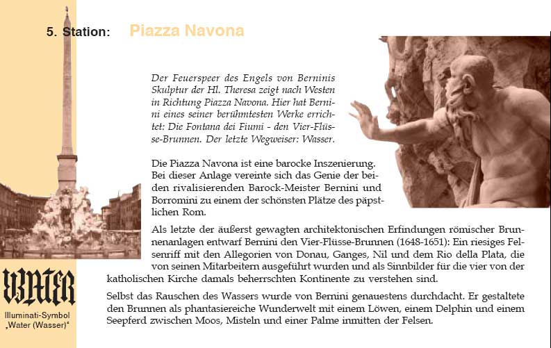 Dies ist übrigens auch wieder künstlerische Freiheit - die uns noch öfters begegnete - denn Bernini ist lange vor Gründung des Illuminatiordens gestorben. |